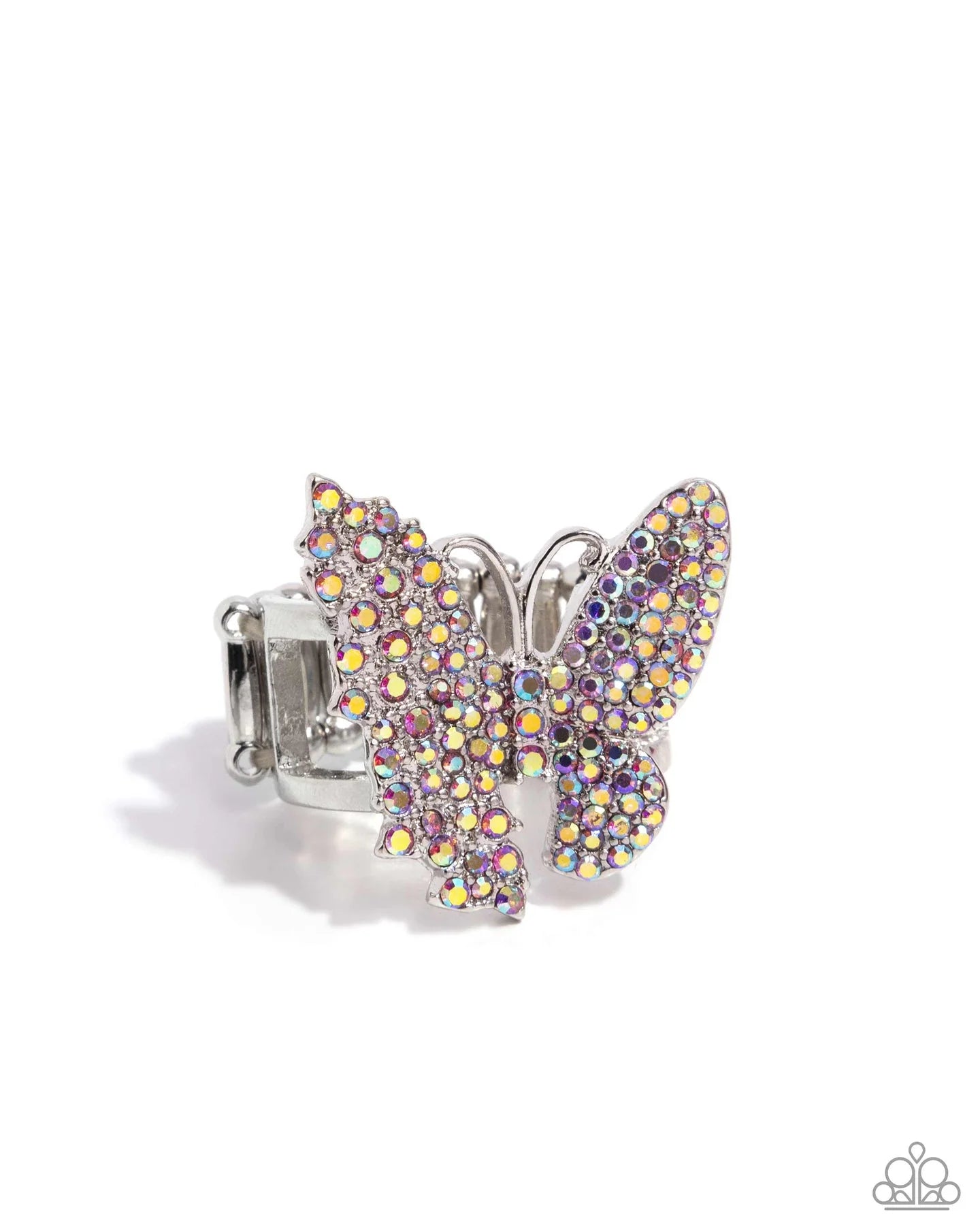Aerial Advocate - Pink Iridescent Rhinestone Silver Butterfly Ring - Paparazzi