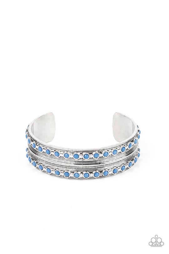 Etched and embossed in stacks of linear texture, an antiqued silver cuff is bordered in rows of faceted Spring Lake beads for a refreshing finish.