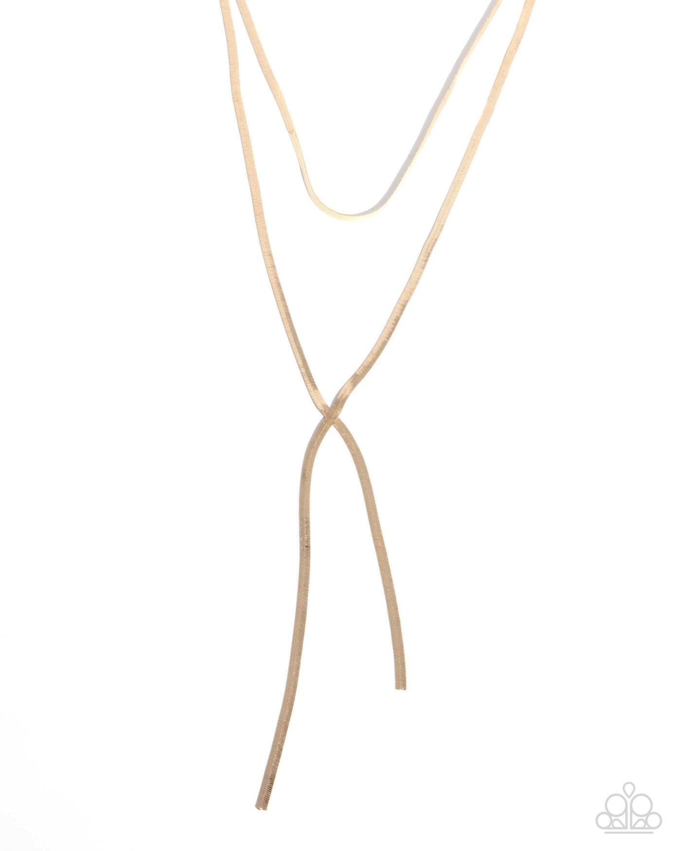 A pair of sleek gold snake chains loops and intertwines to create a trendy lariat silhouette. Features an adjustable clasp closure.