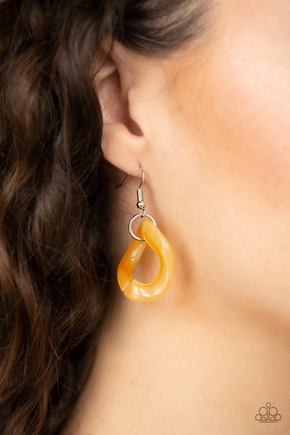 Featuring a faux marble finish, yellow acrylic links gradually increase in size as they link below the collar in a statement-making fashion. Features an adjustable clasp closure.