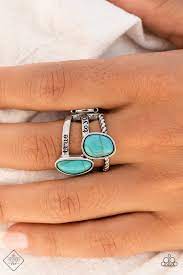 Three bands of copper arc across the finger, creating a layered display. The topmost bar is etched with the word "true" as the center bar completes the inspirational phrase with the words, "to you" etched inside. The last copper bar is twisted in a rope-like texture, as a pair of irregular turquoise stones add a splash of color. Features a stretchy band for a flexible fit.