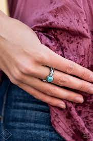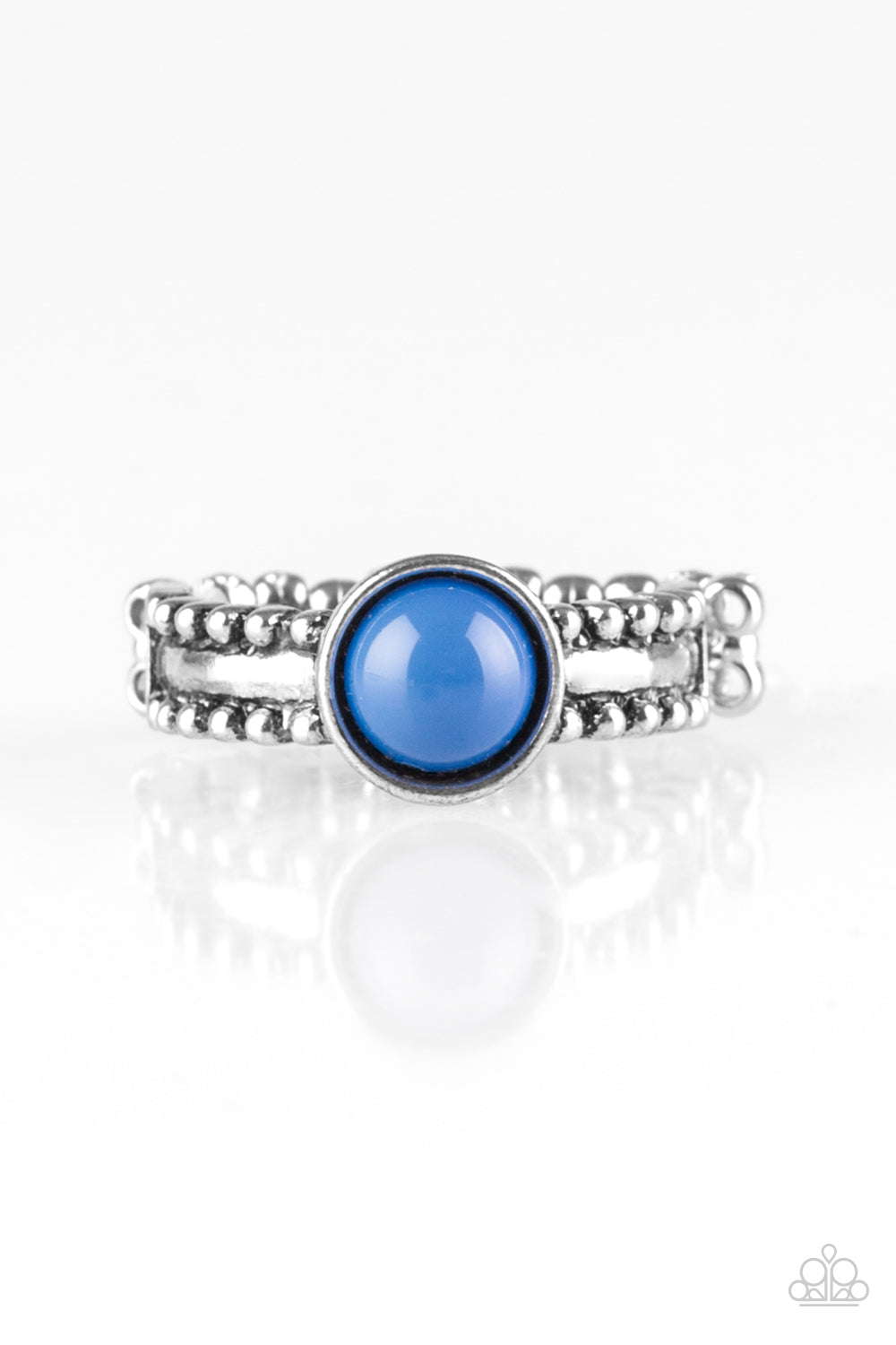 A refreshing blue bead is pressed into the center of a dainty silver band radiating with studded detail for a seasonal look. Features a dainty stretchy band for a flexible fit.