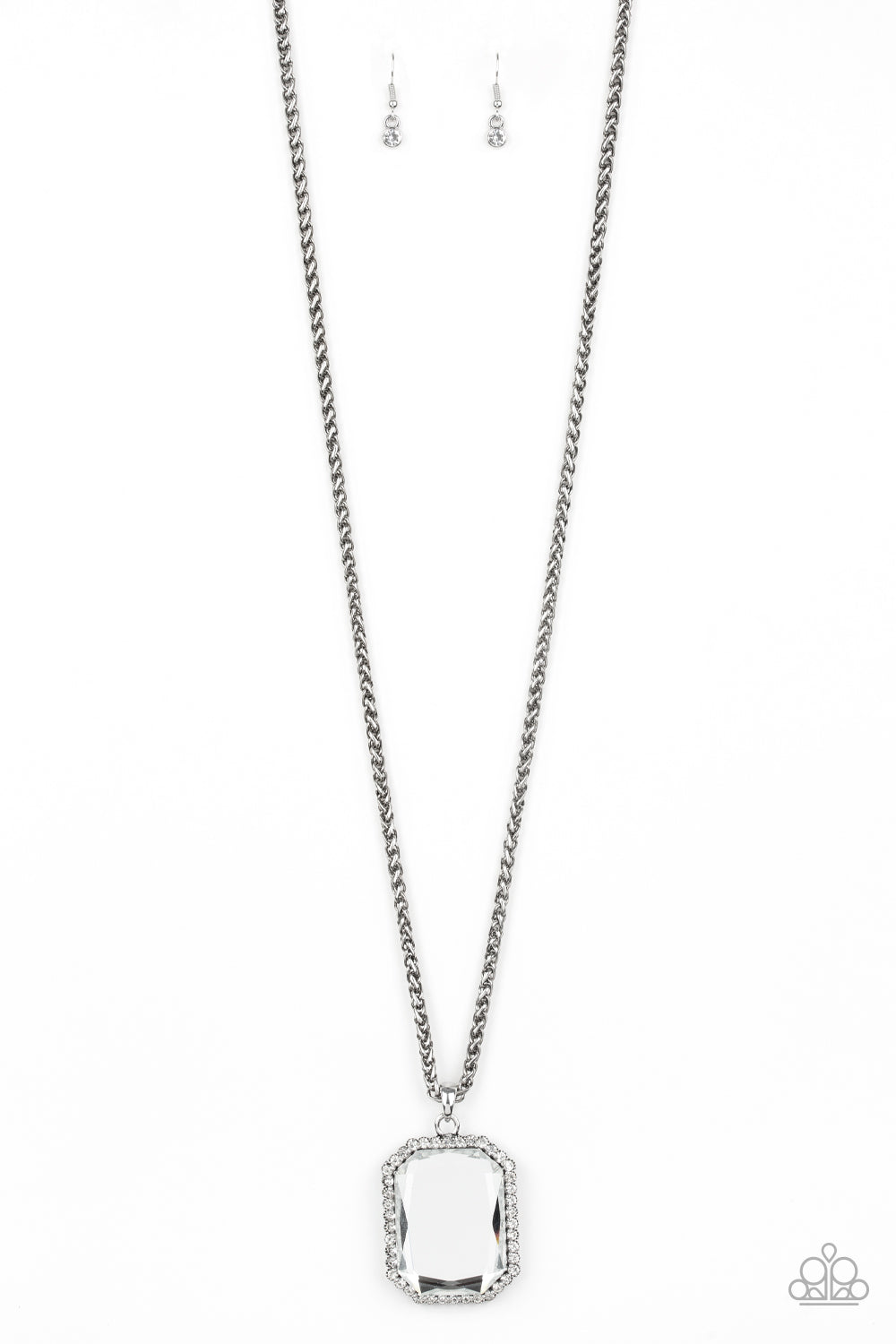 A gorgeous long link chain suspends a mirror-finish beveled rhinestone for a flashy display. Life of the Party exclusive. Sold as one individual necklace with matching earrings.