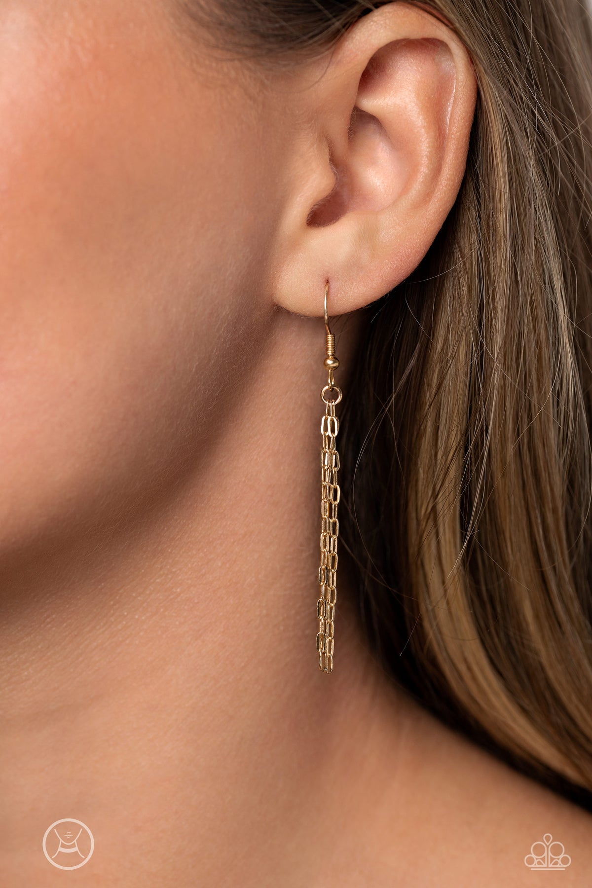 A dainty duo of gold paperclip chains coalesces down the neckline, with one chain slightly bigger than the other to emphasize its high-sheen, monochromatic simplicity. Features an adjustable clasp closure.