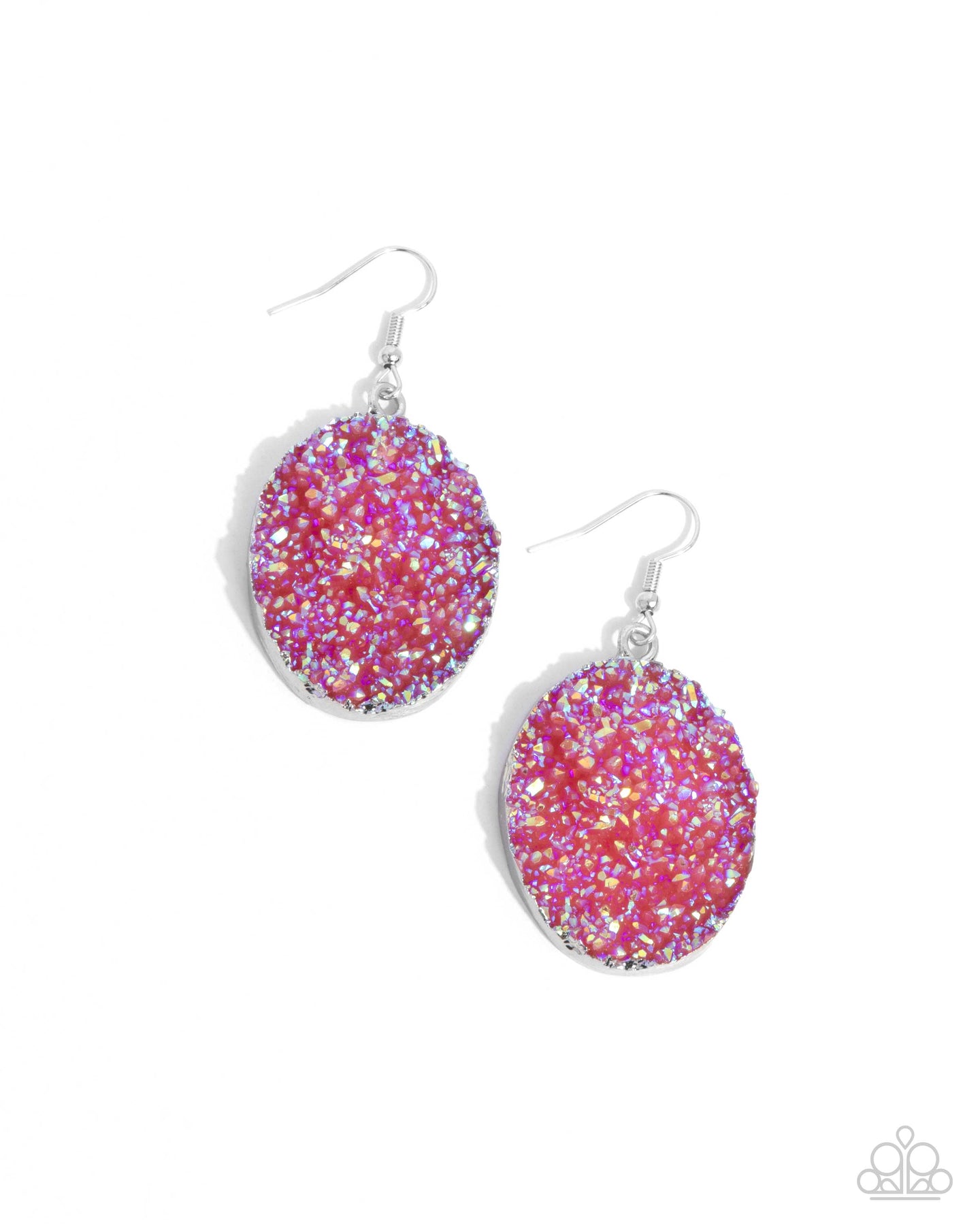 Featuring pink UV druzy-like accents, a silver oval frame glides below the ear for a jaw-dropping lure. Earring attaches to a standard fishhook fitting. Due to its prismatic palette, color may vary.