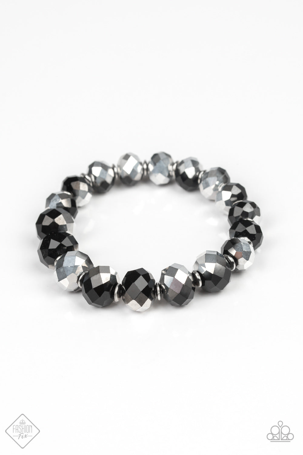 Brushed in an iridescent shimmer, metallic purple gems are threaded along a stretchy band, gradually increasing in size near the center for a dramatic finish. Paparazzi Accessories