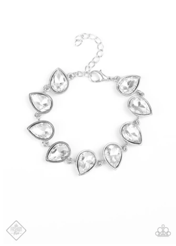 Featuring sleek silver fittings, an exaggerated display of oversized white teardrop gems delicately link around the wrist in a glamorous finish. Features an adjustable clasp closure.