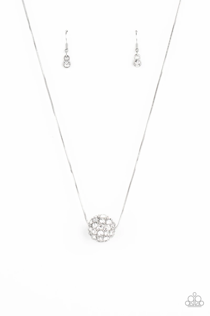 Bedazzled in glittery white rhinestones, a dramatic silver bead slides along a sleek silver chain below the collar for a statement-making look. Features an adjustable clasp closure.